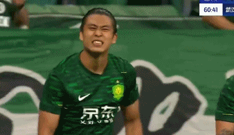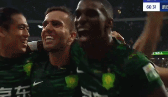 打破球荒之后,张玉宁兴奋的与法比奥、塞尔吉尼奥、林良铭一起疯狂庆祝。随后,膝盖受伤的张玉宁咧着嘴从草坪上爬起来。